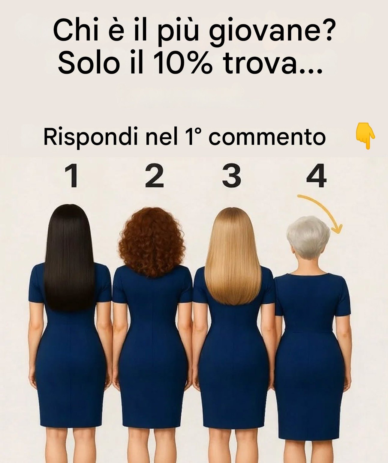E se ti dicessi che a volte il tuo cervello ti mente… con una sicurezza incredibile? 😌 I test visivi hanno questa fastidiosa (e affascinante) capacità di mettere in discussione le nostre convinzioni. Questo, apparentemente semplice, ha già fatto dubitare migliaia di persone di se stesse. Quattro donne, un obiettivo: identificare chi è la più giovane. Facile? Non ne sono così sicuro…