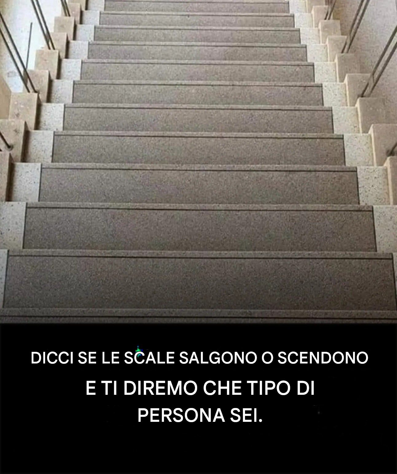 Chi avrebbe mai pensato che una semplice immagine potesse seminare dubbi… e dirci così tanto? Quando guardiamo una scala, alcuni hanno la sensazione di salire, altri di scendere, come se la nostra mente scegliesse una direzione prima ancora di pensarci. E se questa prima impressione rivelasse qualcosa di sottile ma molto rivelatore sul nostro approccio alle nostre giornate? Fermatevi un attimo, guardate l’immagine… e lasciatevi trasportare.