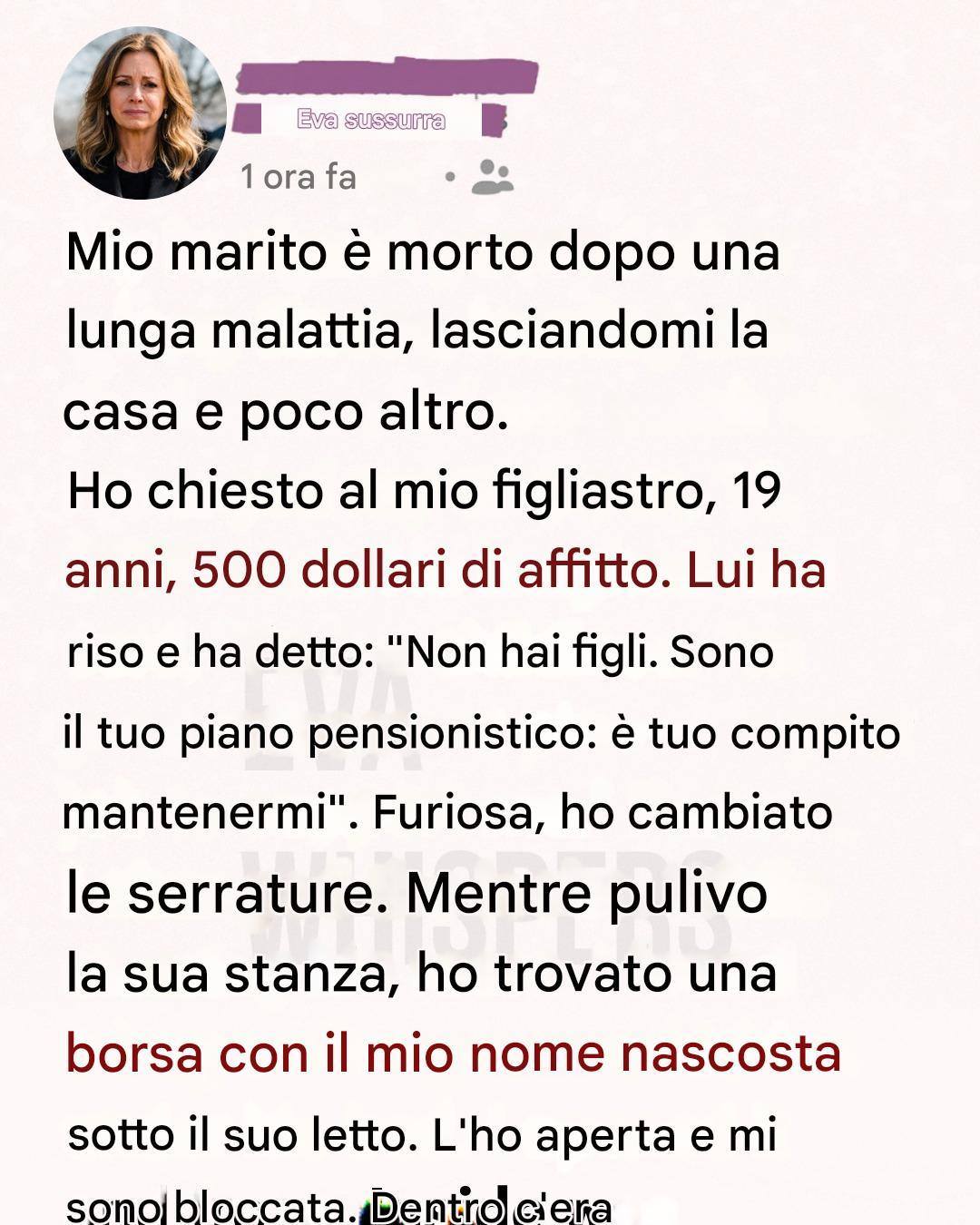 Le stanze erano le stesse, eppure tutto risuonava vuoto, come se le pareti stesse trattenessero il respiro. Per mesi prima della sua scomparsa, le nostre giornate erano state assorbite da corridoi d’ospedale, esami di laboratorio e una prudente speranza. Quando tutto questo finì, il silenzio che seguì risultò più pesante della paura con cui avevamo convissuto. Al dolore si aggiunsero subito le preoccupazioni pratiche: spese mediche ancora da saldare, il mutuo, e la dura realtà di dover gestire tutto da sola. Mio figliastro Leo, diciannove anni, viveva ancora con me. Eravamo entrambi in lutto, ma lo affrontavamo in modo diverso, cercando di immaginare un futuro per il quale nessuno dei due era davvero preparato.
