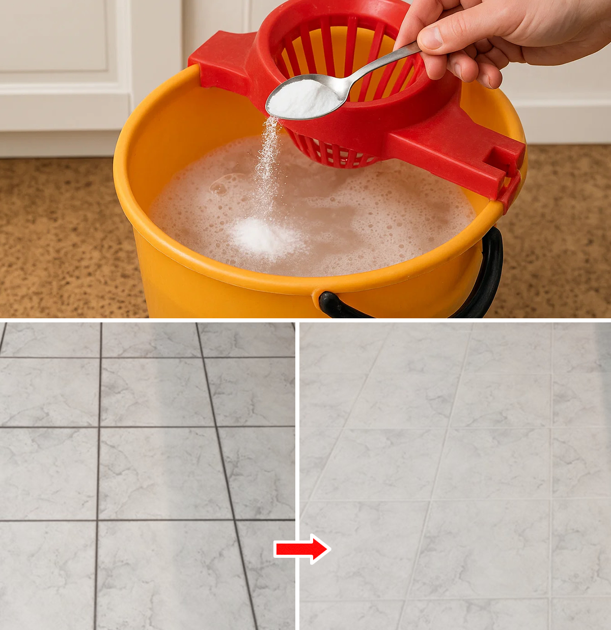 Per avere delle fughe immacolate ti servono solo due ingredienti che probabilmente hai già nella tua dispensa – l’aceto e il bicarbonato di sodio. Sono la chiave per una pulizia efficace e naturale delle fughe del pavimento. Questa potente combinazione non solo rimuove lo sporco e i residui ostinati, ma schiarisce anche le fughe facendole tornare al loro colore originale.