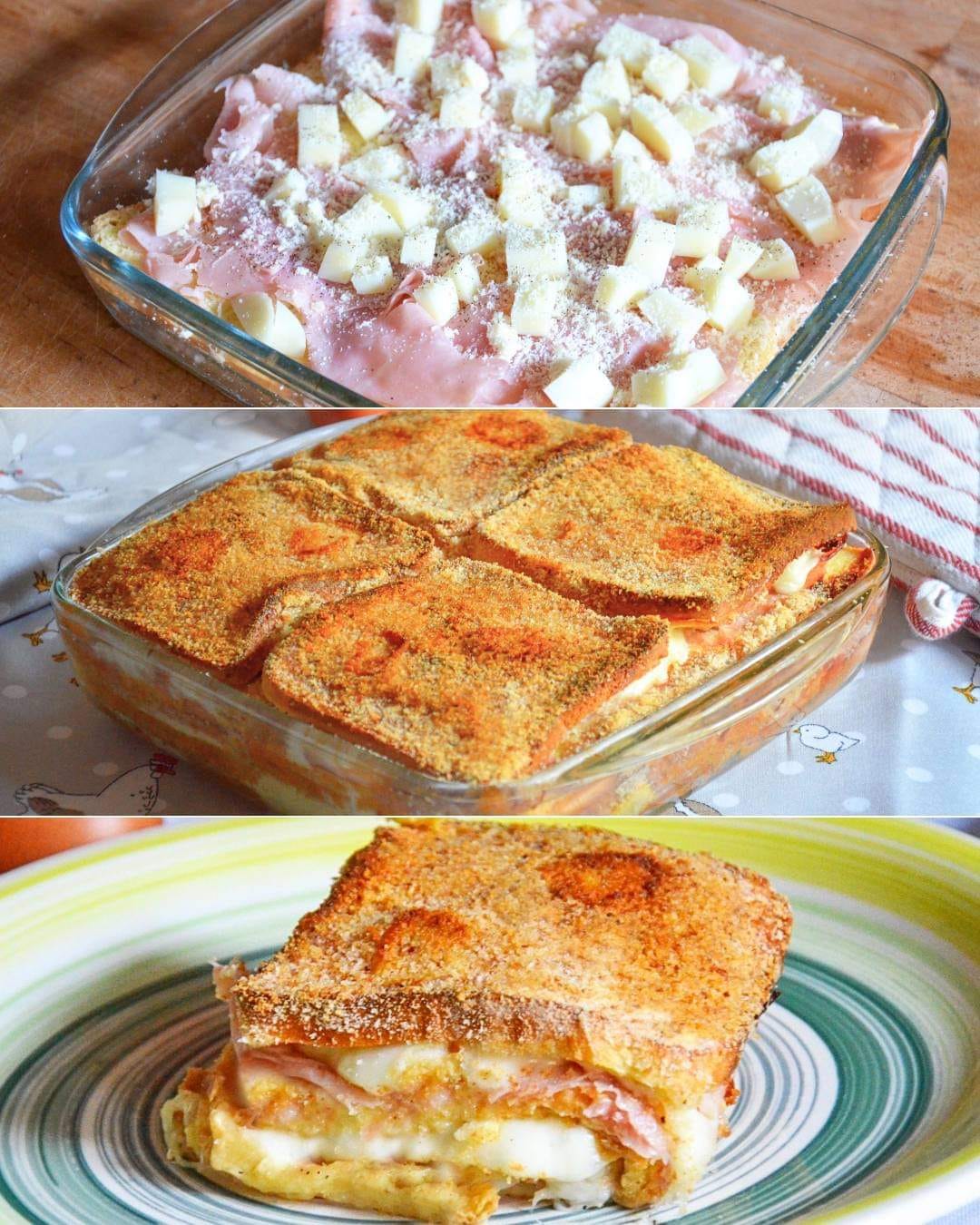 Il Pancarré alla parmigiana è una preparazione gustosa e irresistibile, una versione originale e veloce della classica mozzarella in carrozza. Nella nostra ricetta le fette di pane vengono immerse in un composto di latte e uova, farcite a strati con scamorza e prosciutto cotto, e infine cotte fino a quando diventano dorate, croccanti e irresistibilmente filanti. Un piatto che completerà ogni pranzo o cena, anche dopo chi arriva tardi dall’ufficio, e che piacerà sia a grandi che a piccini. Basta aggiungere un contorno di verdure di stagione e in poco tempo si ha un pasto unico non solo soddisfacente, ma anche equilibrato e sostanzioso. Potete servirla anche come torta salata durante un buffet o ad una festa di compleanno: il successo è più che assicurato. Ecco come fare il pane alla parmigiana senza esitazione.