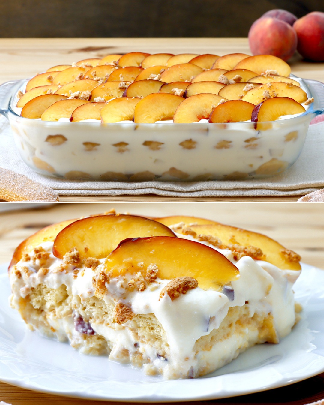 Per preparare un tiramisù alle pesche per circa 6-8 porzioni, avrai bisogno dei seguenti ingredienti: