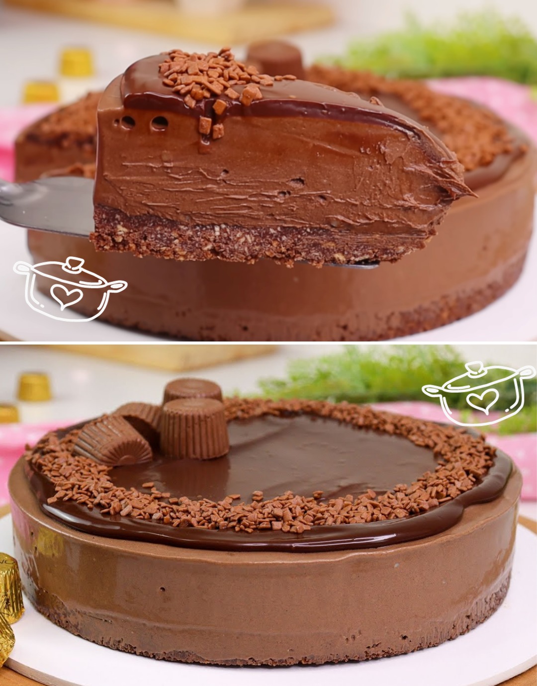 Senza gelatina, la torta di mousse al cioccolato ha una consistenza cremosa e vellutata, e un ripieno cioccolatoso che adoriamo!